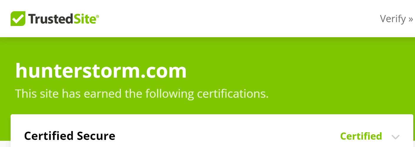 Our commitment to online safety is further solidified by the GoDaddy verified and secured seal proudly displayed on our website. The seal signifies that HunterStorm.com is verified, secured, and operates with the highest standards of web security, providing a safe space for our users.