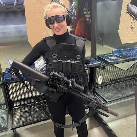 Hunter’s passion for tactical shooting sports fuels her dedication to mastering various shooting disciplines, including pistol, rifle, and shotgun. She enjoys running multi-gun, multi-target drills, finding them a Zen and relaxing experience. In fact, Hunter finds shooting so relaxing she sometimes refers to it as “kinetic golfing.”